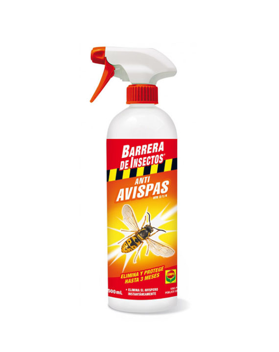 Anti avispas COMPO produce una barrera contra las avispas. Producto muy eficaz aplicable en espray para crear una barrera contra las avispas. También actúa contra moscas, mosquitos o polillas. Elimina y protege hasta 3 meses. Evitar en contacto con alimentos o utensilios de cocina, no utilizar en presencia de personas o animales domésticos. Ventilar bien antes de entrara en la zona tratada.
