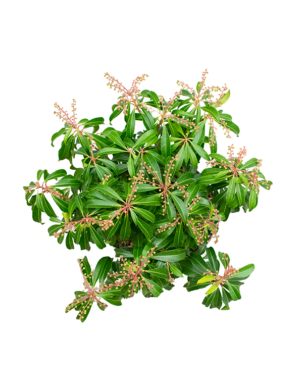 Este hermoso arbusto de hoja perenne es muy popular por sus hojas nuevas. Estas hojas jóvenes nacen de un color rojo o rosado que con el tiempo se acaban volviendo verdes. Suelen aparecer nuevas hojas varias veces al año. La mayoría de las variedades de Pieris también florecen entre abril y mayo.