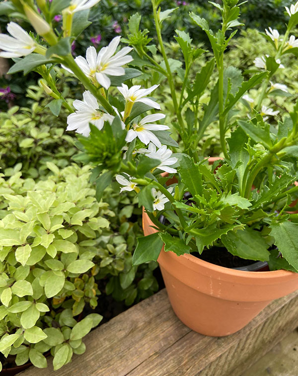 La Scaevola Km0 es una planta de origen australiano que se adapta muy bien a nuestro clima mediterráneo. Se la conoce por el nombre común de Escévola o Abanico pero su nombre científico es Scaevola Aemula. Es una planta cultivada en nuestro vivero de producción en Hondarribia. De nuestro vivero directo a tu casa. Al ser cultivada en nuestros viveros conseguimos plantas de máxima calidad y mejor aclimatadas a la zona. Es una planta vivaz semi-suculenta que tiene un crecimiento rápido. Es de porte rastrero o colgante y cuenta con unos 25 cm de altura aproximadamente. Sus hojas son dentadas y de un verde oscuro y sus flores son pequeñas. Tienen cinco pétalo, forma de abanico y son de color morado o blanco.