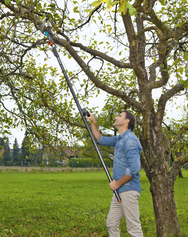Adaptándolo al mango telescópico Combisystem, será muy fácil cortar las ramas desde el suelo. El sistema de bloqueo garantiza que la conexión se mantenga fija. Te garantiza un corte sin esfuerzo de ramas de hasta 35 mm de diámetro. El revestimiento antiadherente de la cuchilla asegura un corte limpio y preciso. También una limpieza sencilla.