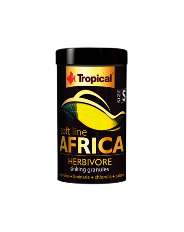 AFRICA HERBIVORE en formato de gránulos se hunden lentamente y está destinado a peces africanos herbívoros y omnívoros. Contiene algas (Spirulina platensis 20%, Laminaria digitata 4,1%, Chlorella vulgaris 2,8%, Lithothamnium calcareum 1,2%) que son fuente de: proteína, compuestos minerales, sustancias que contribuyen a la inmunidad y prebióticos.